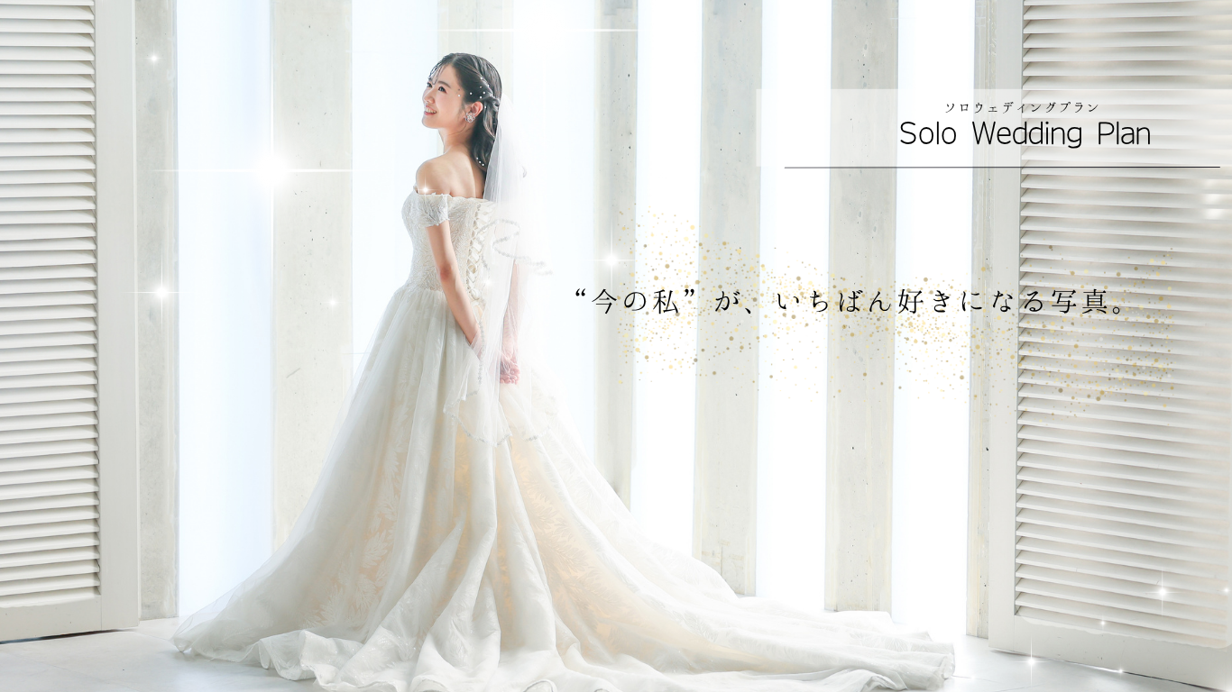 ◆ソロウェディングフォト◆ “好き”を纏って、自分史上いちばんのわたしを残す お1人様ウェディングプラン ソロウェディングは、わたしに花を添える、自由な装いの時間。ドレスも、メイクも、ポーズも、自分の“好き”で決めていい